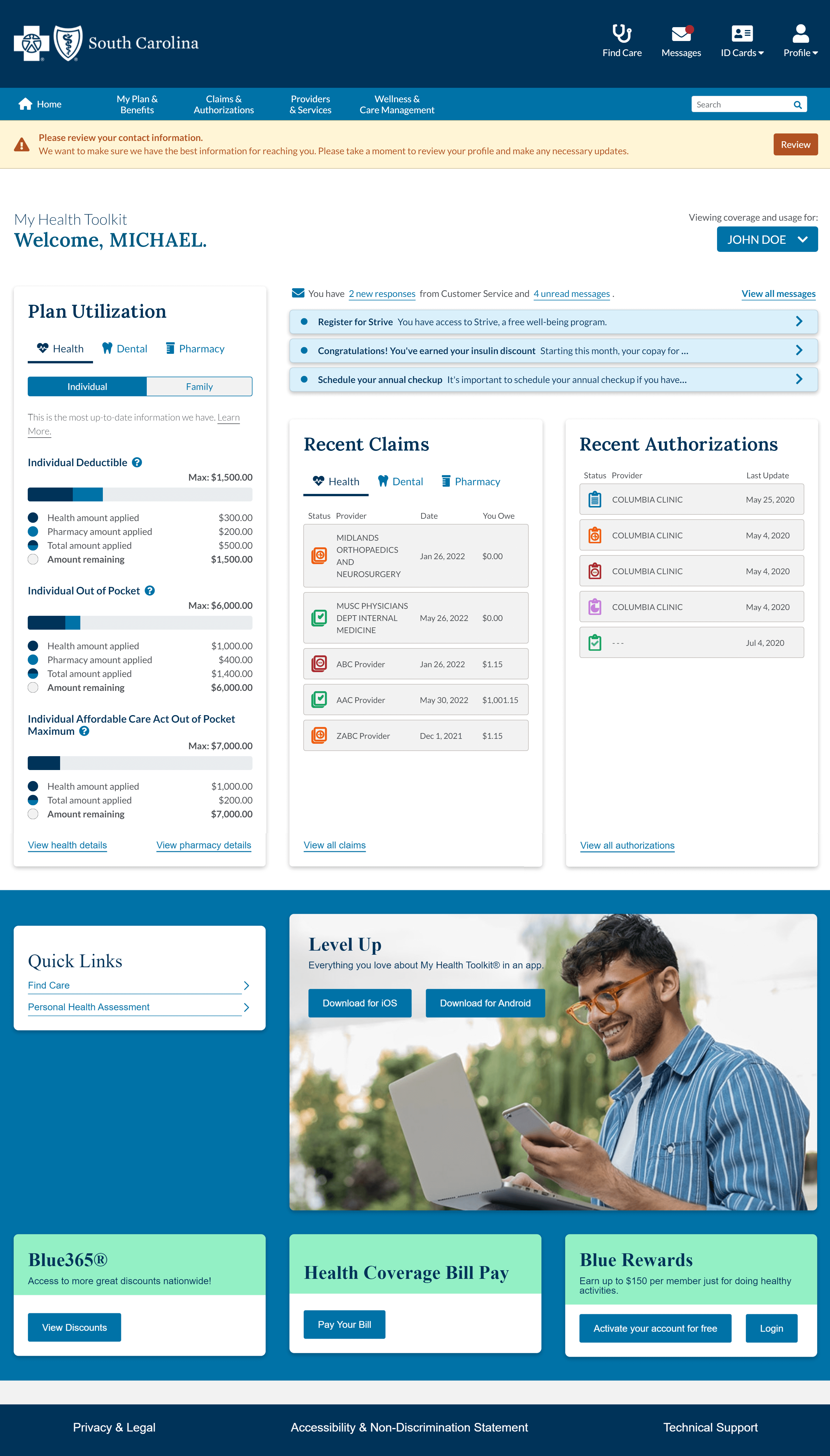 Members can download the My Health Toolkit mobile app or visit www.SouthCarolinaBlues.com to set up or log into their account. If you have questions, contact your sales representative.